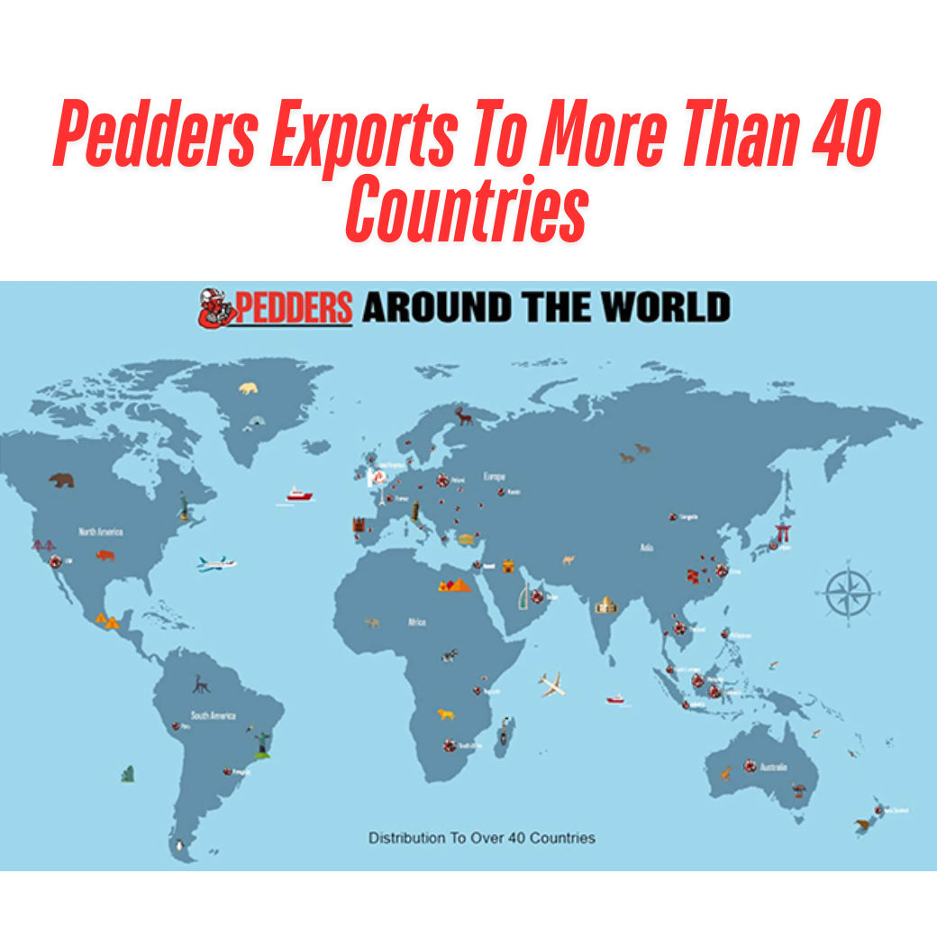 ปัจจุบัน Pedders ส่งออกสินค้าไปยังกว่า 40 ประเทศทั่วโลก โดยสามารถพบเห็นผลิตภัณฑ์และทีมงานของเราได้ใน เอเชีย ยุโรป แอฟริกา และอเมริกา เราภูมิใจในพันธมิตรด้านการส่งออกมากมาย และยังคงมองหาโอกาสใหม่ ๆ ในตลาดเกิดใหม่อย่างต่อเนื่อง เพื่อขยายการเติบโตในระดับสากล